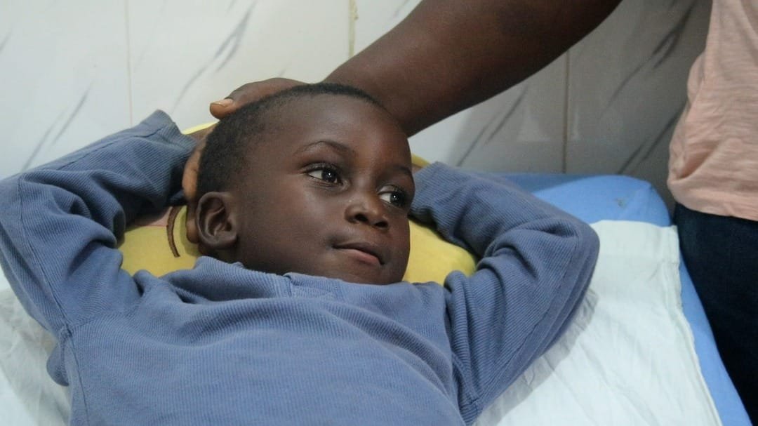 Chris Johan, 7 ans, originaire de Sanchou à l’ouest du Cameroun a une blessure chronique